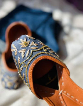 introducing khilta phool blue base with elegant resham embroidery. Best to slay your eid outfits 😍 Our khussas are created to keep your comfort in mind with double padded sole...