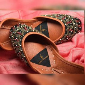 New collection silk black base with very elegant zari work and hand embroidery with red and copper color. Our khussas are created to keep your comfort in mind with double...