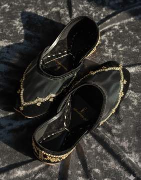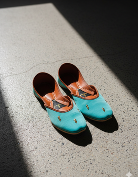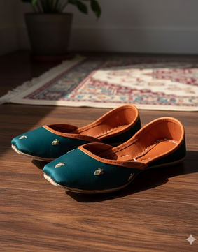 Silk-Zari Khussas (Peacock Green)
