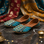 “قوسِ قزاح🌈” The beautiful embellishment of colorful flowers on this white based khussas are here to glorify your look this Eid🤍•Contact +92 312 3059728 for order and details Colors can...