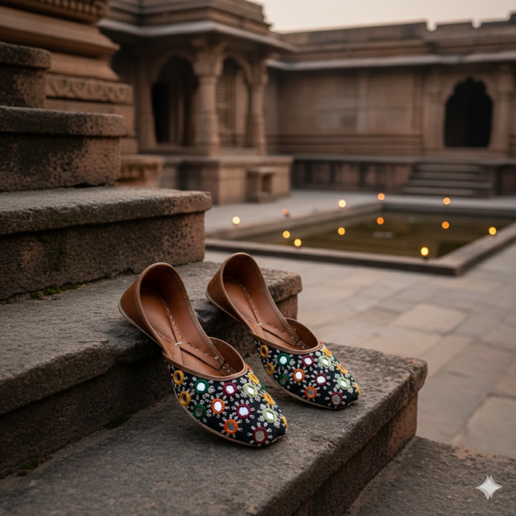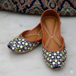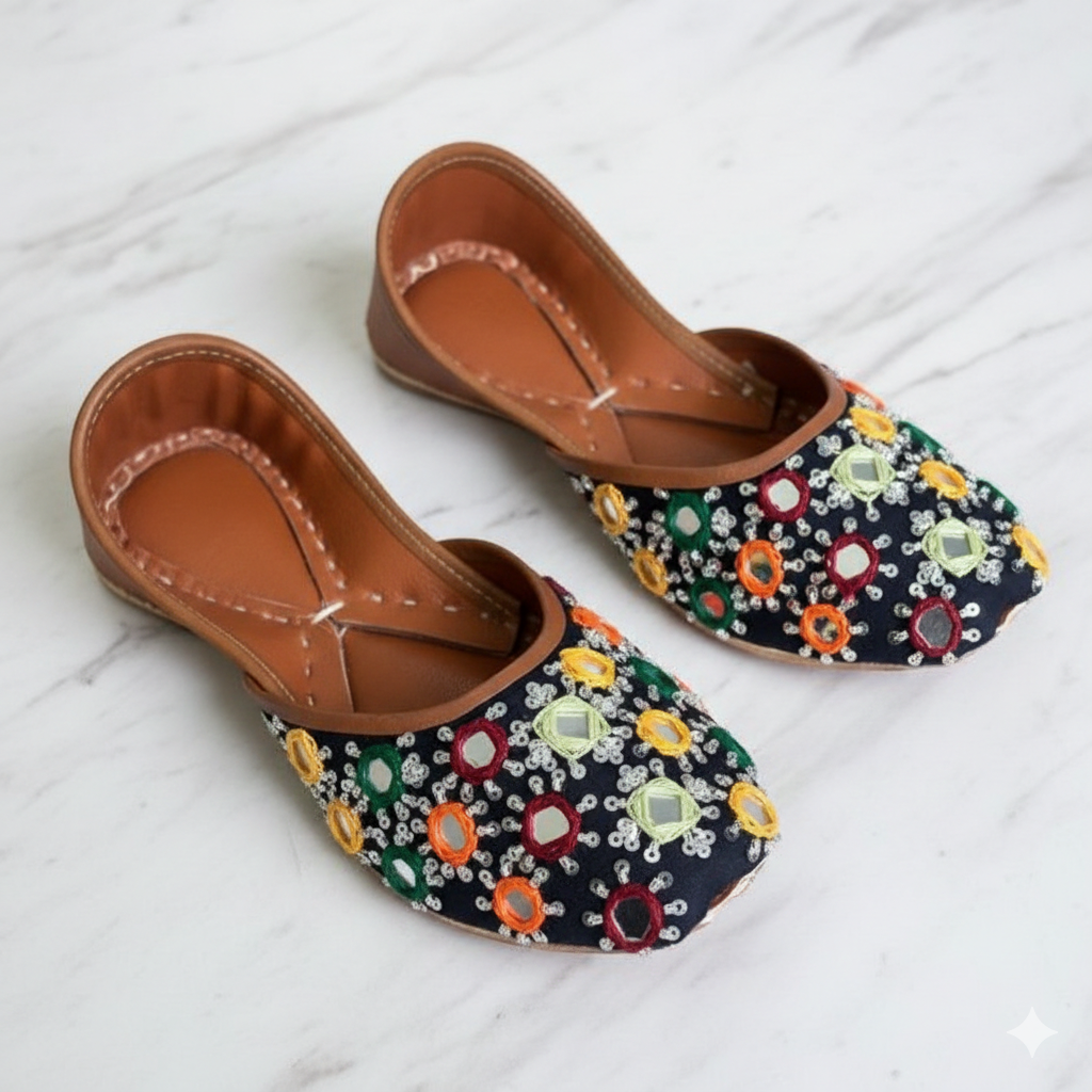 • Black base and multi coloured resham on the sides of mirrors with silver sequence spread beautifully all over the jutti!