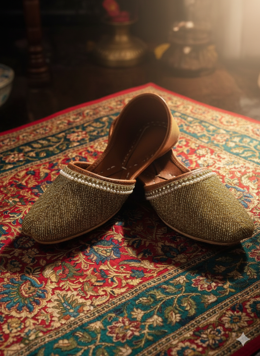 ‘Taj’ is adorned with fine and very elegant white pearls set against a golden shimmery base. 💫💖 This is the perfect pair of juttis to set you in a festive...