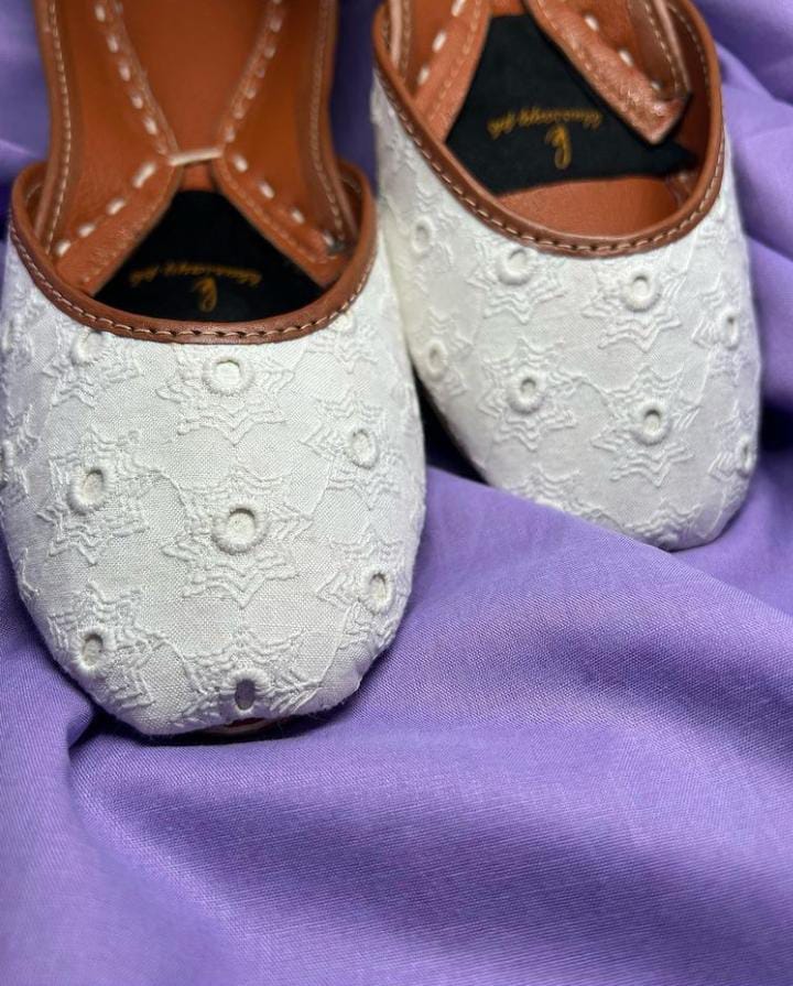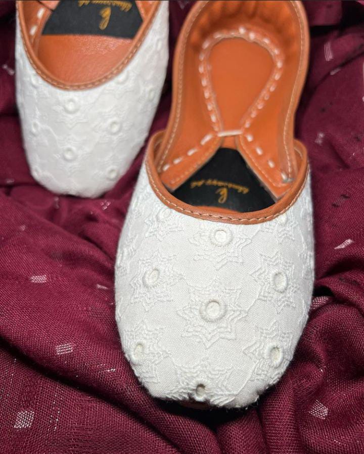 chikan kari’ (white) 🤍🌸 Perfect trendy khussas to go with all your casual outfits 🥰. If you’re looking for comfort and style at the same time, these chikan kari khussa...