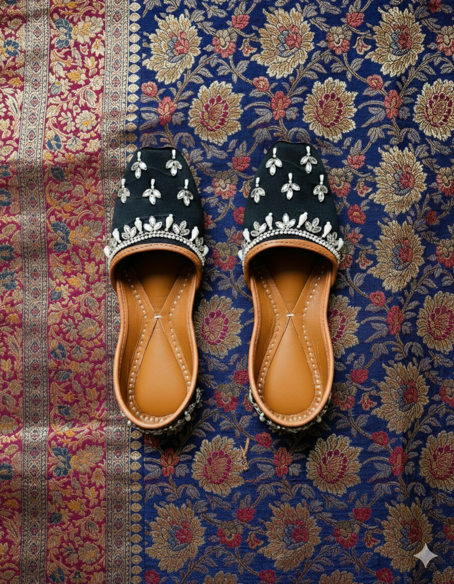An elegant choice adorned with beautiful silver crystal beeds and shiny white pearls on to the bed of black silk