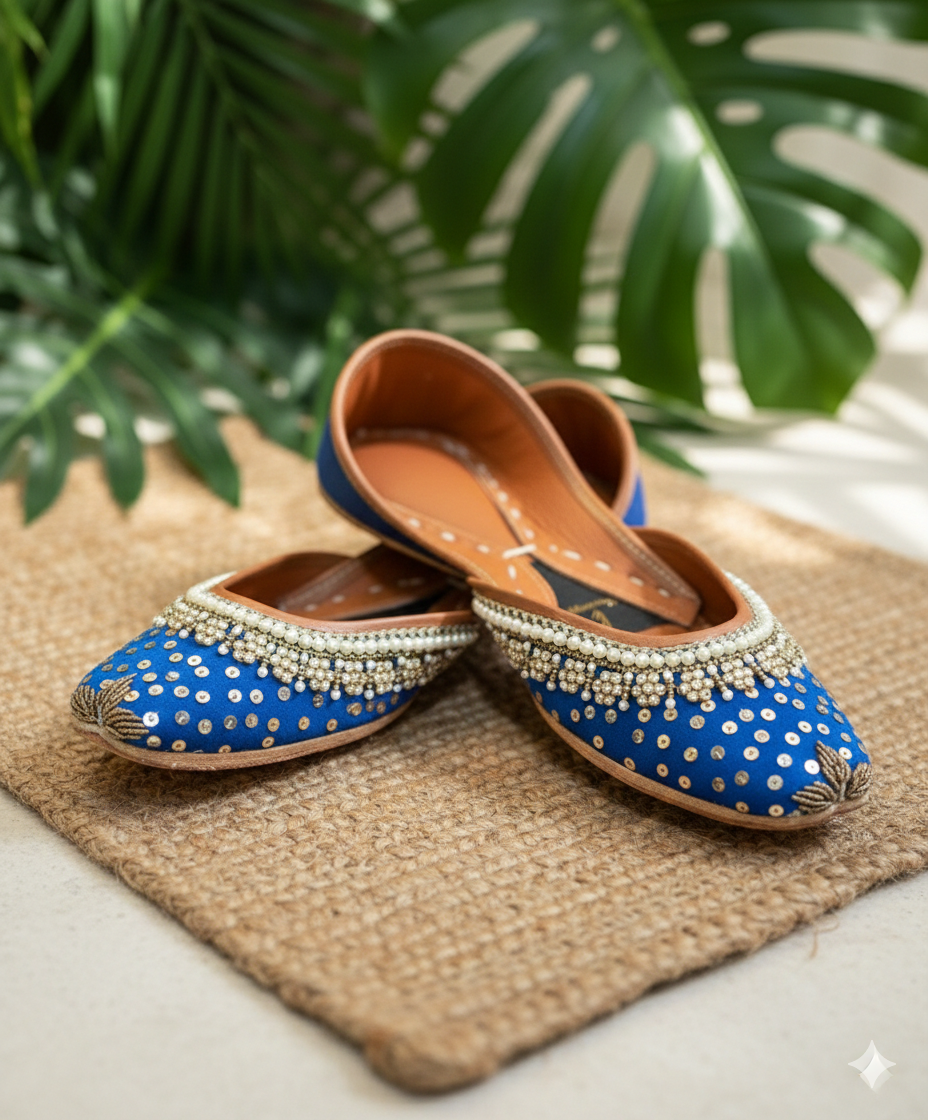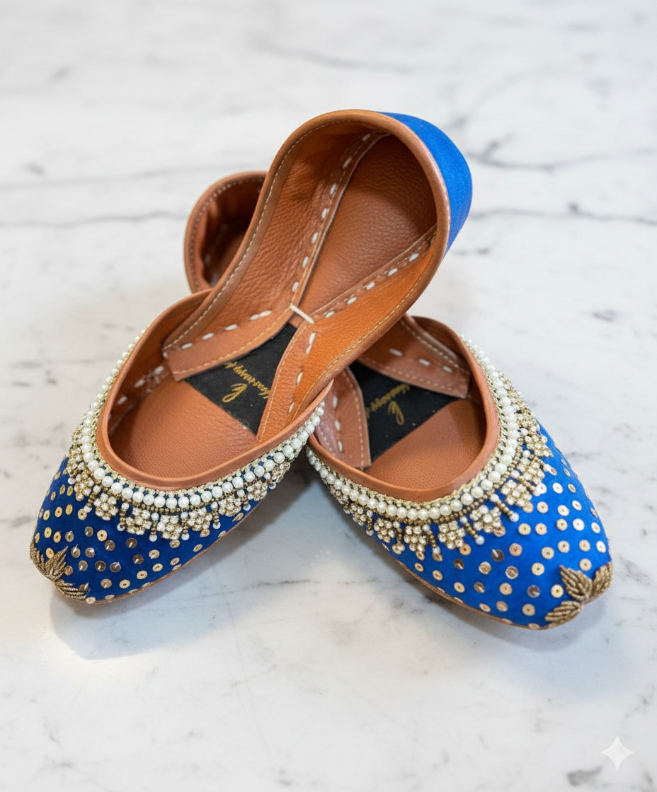 These khussas are a combination of traditional kora dabka and gota work and embellished semi precious pearls which add festive vibe in every step that you take! 💖💃 Colors can...
